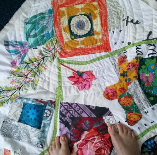 ReplyDeleteTerrific quilt--quite an accomplishment! It's very light-hearted and free form--I love the lack of straight lines for a change. I'm curious--why walking foot quilting and not FMQ?