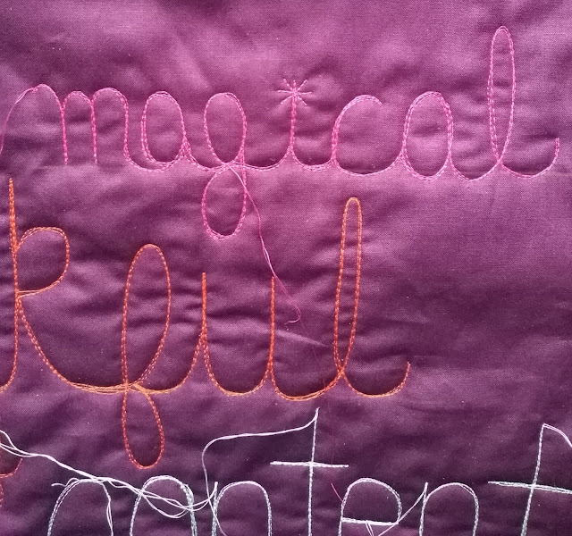 Later this week, I'll post about specifically using different weights of thread to create contrast in a quilt! In next week's wholecloth post, I'll discuss variation in word size. So much to explore on a seemingly simple project!