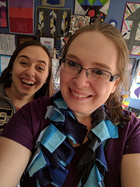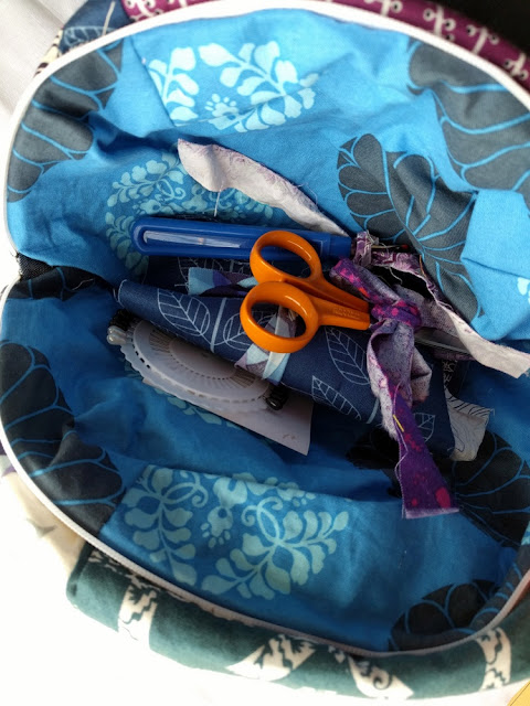I made her this little bag, a smaller Ellie Travel Case by Fabric Mutt, filled with notions and fabric for her to use. I passed along a special pair of scissors and a seam ripper from my own collection. She's 9 and she's going to be a fabulous sewist; I can tell already. :)