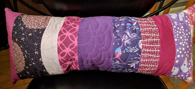 I made the ever-popular stuffed oblong pillow (again, with Poly-fil) for one of my nieces, who didn't yet have a birthday to receive one. I'll probably make her a scarf for her birthday next year. I also made a couple of these in red and purple for my other nieces' recent birthdays, but forgot to take pictures. This is my own pattern and it's always fun to make.