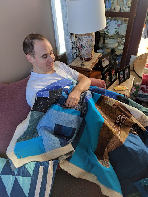 Finally, one or two people receive a custom handmade quilt from me (one day, all of my family and friends will have one, I think), but this year, I only made one. It's a joint Christmas and birthday present for my younger brother, and he is really excited about it (hint: it combines improvisational piecing and a large beer bottle). That piece has yet to be quilted but there's no pressure to finish it for Christmas. He still got to open it, though, and he very much approves. More soon.