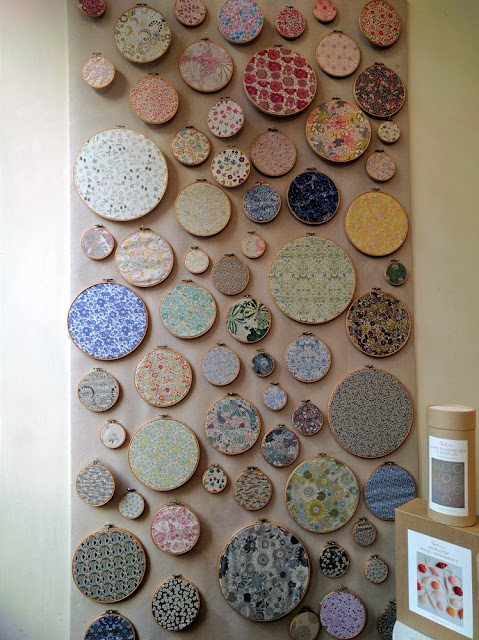 The famous Liberty embroidery hoop wall, as soon as you walk in the door.