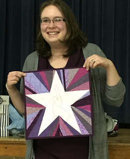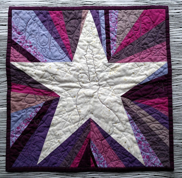 Luckily, Sonia loved it! And I received a Hamilton (the musical) mini quilt and tons of little gifts from my friend Maggie, our webmaster and photographer (@squishythings - she also took the photos above for the @cjmqg Instagram account). I was so surprised and pleased! It's already hanging on my mini quilt wall. If you know the musical, you'll recognize the quilting around the star!
