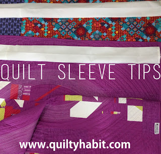 - Pay attention to requirements of the show or exhibit. The typical size I've seen is 4" wide for a quilt sleeve, but there have been a couple of shows that require other sizes. I would assume that if you don't have the right size sleeve, your quilt cannot be included in the show, as it will not fit. Do any of you have further comments about this? I'd love to know.