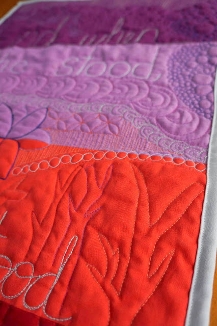 Jess, this is so nice. Pretty quilting, great colors, lovely message. Wonderful finish. :-)