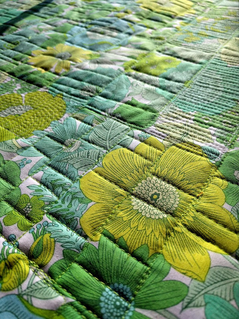 I backed this quilt with a pretty, large floral, also from Liberty Garden ("Liberty Garden Blue). So many blues and greens! I might just use this as a table topper with the back side up. :)