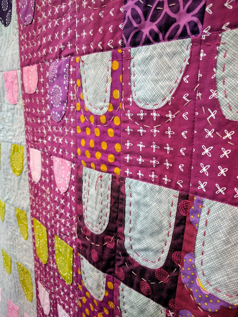 Hand quilting (and yay imperfection!) made a statement on this unique quilt (also, there was a lot of purple. Love!).