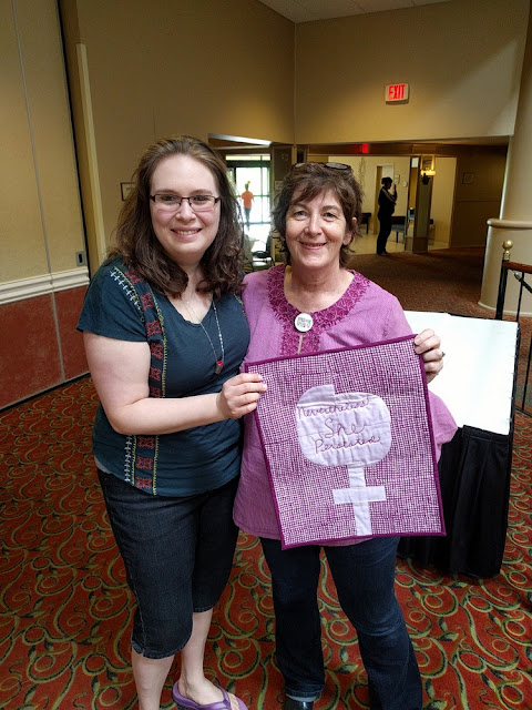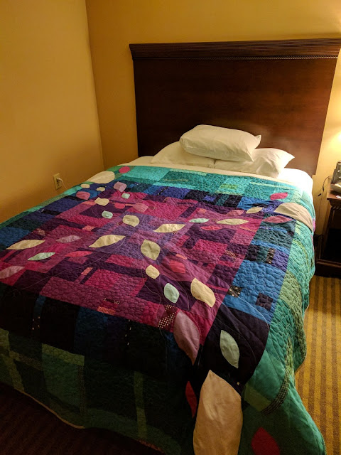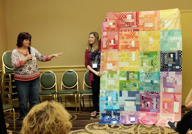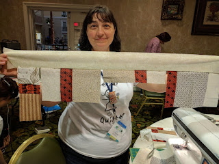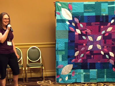 Okay, last few photos! Here's a final picture of one of the progressive quilts I worked on over the 3 days, with 11 other quilters - the theme was "quadrants." It was a lot of hard work, and Paulette from my guild won it! She ended up gifting it to Jess Levitt, who promised that she and I could quilt it together (YAY! All I ever want to do is quilt one of the progressive quilts, so this made my day). Great job to all who participated.