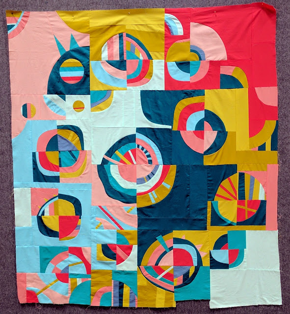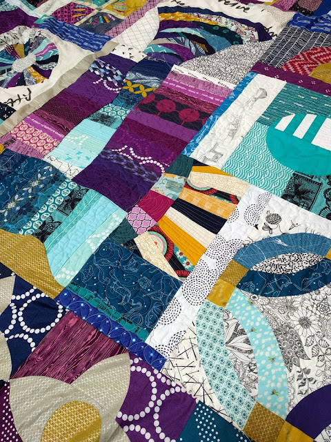 I also got the opportunity to quilt about a third of my own bee quilt with a curve theme (from the Sisterhood of the Traveling Quilts). This will likely be my go-to "for fun" project whenever we have guild sewing days this year.