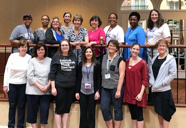 And one more picture of our guild's 16 attending members! I'll share more about my fabric acquisitions and swag in another post.