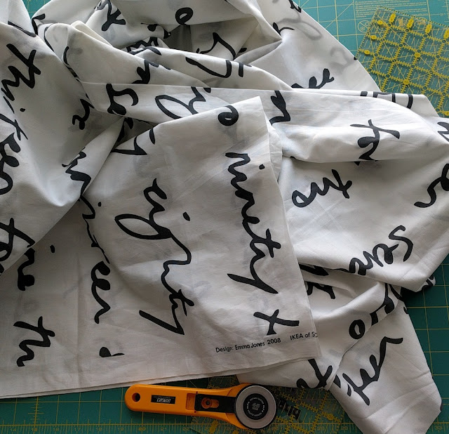 I even picked out the fabric. I've been holding onto about 4 yards of Britten Nummer fabric from IKEA for several years now with Gollum-like attachment. In fact, it's discontinued, and I have to sadly tell my students and lecture attendees (they always want to know about that lovely fabric on the back of a couple of quilts). The fabric depicts numbers written out in cursive, and it's just a modern fabric marvel. When I posted the above photo on Instagram, others also decried the unavailability of such a gorgeous print. Sigh.