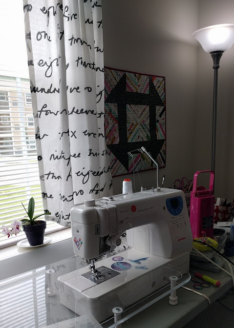 That fabric is perfect for your sewing room windows! And you have a whole room to sew in, that is so nice.