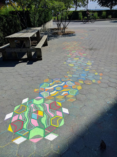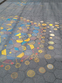 Left: hexagon chalk drawings I stumbled upon in Aug. 2016 in Battery Park, NYC; more drawings in the same place, just one year later. Think it's the same artist? I see all kinds of inspiration for quilt blocks, hexagons, and quilting motifs! This totally made my day!