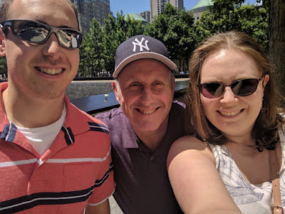 And here are the smiling faces (brother, dad, and me) that persevered through a heavy, emotional day. Despite the subject matter, it was important for us to take this day in NYC together.