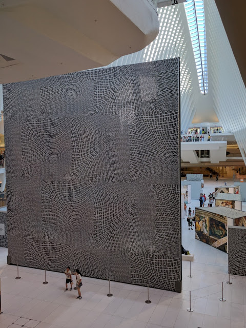 Anyway, I've found myself uniquely situated this year, with several opportunities to visit for several different reasons (one being Quilters Take Manhattan in September and the opening of a special exhibition in October - I will have more information on that soon). This weekend, my brother and I brought my dad to the 9/11 Memorial and Museum and The Museum of Jewish Heritage: A Living Memorial to the Holocaust (where I interned in college). As you might expect, I saw some quilty inspiration throughout the trip.