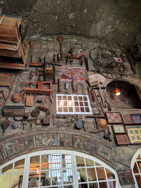 So, back to the exhibit - if you're in the Bucks County, PA area or anywhere within a few hours, you'll want to make a day out of Doylestown this summer. You can spend time at the Moravian Pottery and Tile Works, Fonthill Castle (which I may need to write a whole separate post about), and the Michener Art Museum (I visited last year for a couple other quilt exhibits). And don't miss the quilts at the Mercer Museum (there are even some of the museum's display in the front lobby - like the one above)!