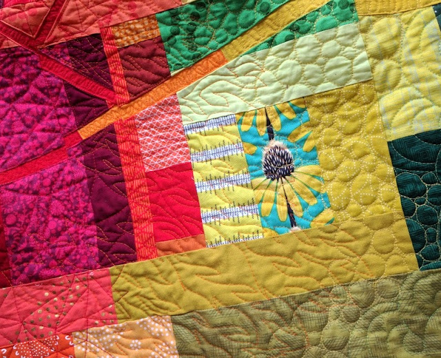 I think the thing I always appreciate about your quilting is your fearlessness! Great looking quilt with an absolute explosion of color.
