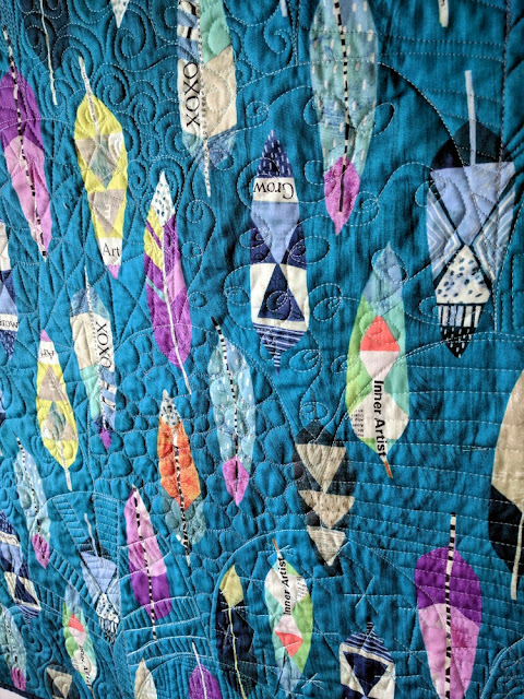 Since Renee's blog is Quilts of a Feather, it seemed fitting to back this quilt with the feathers from Carrie Bloomston's Dreamer fabric collection. I love how the quilting shows up!