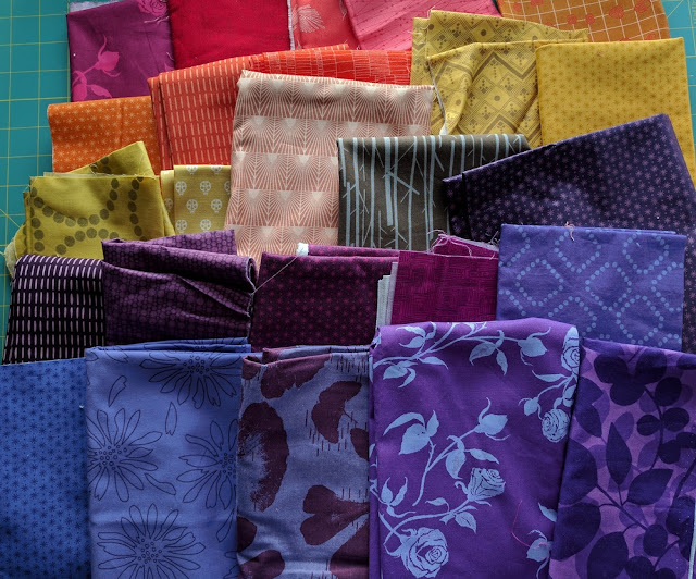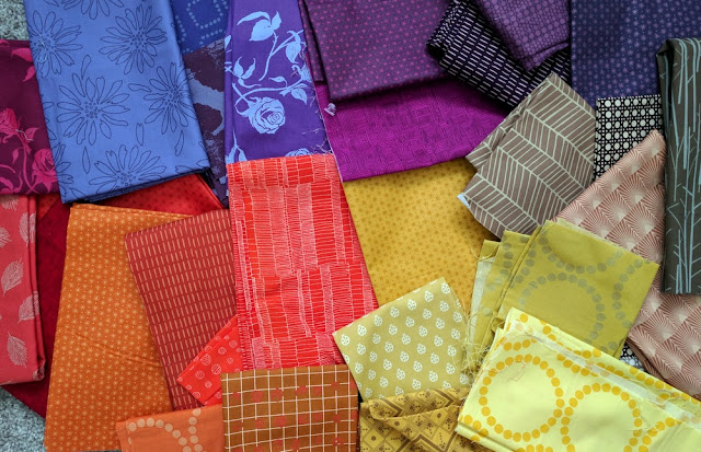 To me, my latest fall quilt is modern because of the fabrics (deep but bright saturated colors, solids and tone-on-tone fabrics), background movement (fade from light to dark), slightly improvisational setting of the blocks, varying size/scale, and some negative space. All while using a well-known block that likely goes back many, many years. I can't wait to quilt it up! More soon!