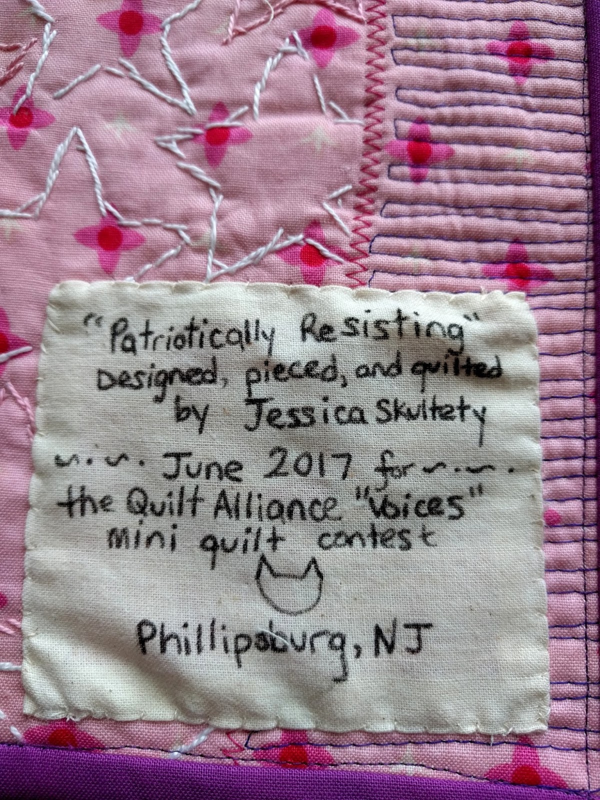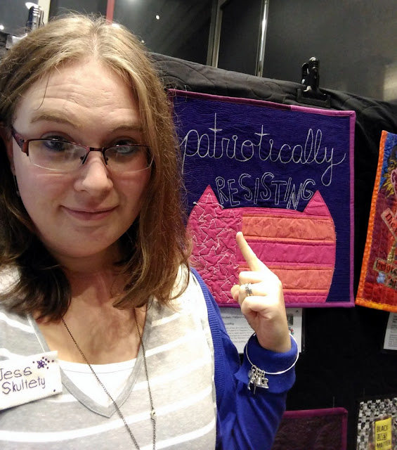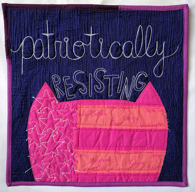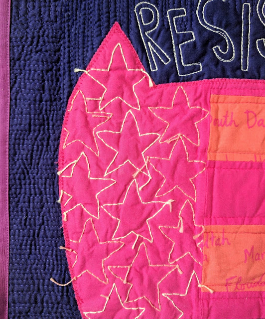 The quilt is currently on auction with the Quilt Alliance until November 20 (#38 at this link) - please consider supporting this wonderful nonprofit organization by bidding on a mini quilt. And if you bid on mine, I hope it encourages you to keep fighting for the America you believe in (and also of the power we the people have in this fight - which also showed its face in last week's elections! Yeah!!).