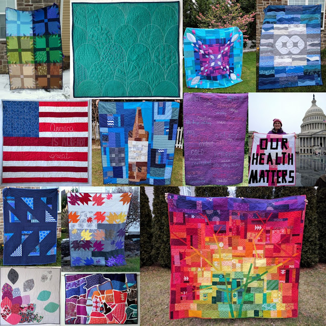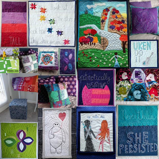 ReplyDeleteSo many beautiful quilts! I really love your style and admire how your values and beliefs shine through your work. Self-care is actually my primary goal for this year and I'm glad you made that a priority for yourself in 2017 -- it's so important but so easy to overlook. My creative goal is to prioritize making for the sake of making and not allowing myself to get hung up in the have-tos and shoulds and not-good-enoughs that can really block my progress. Good luck in 2018!