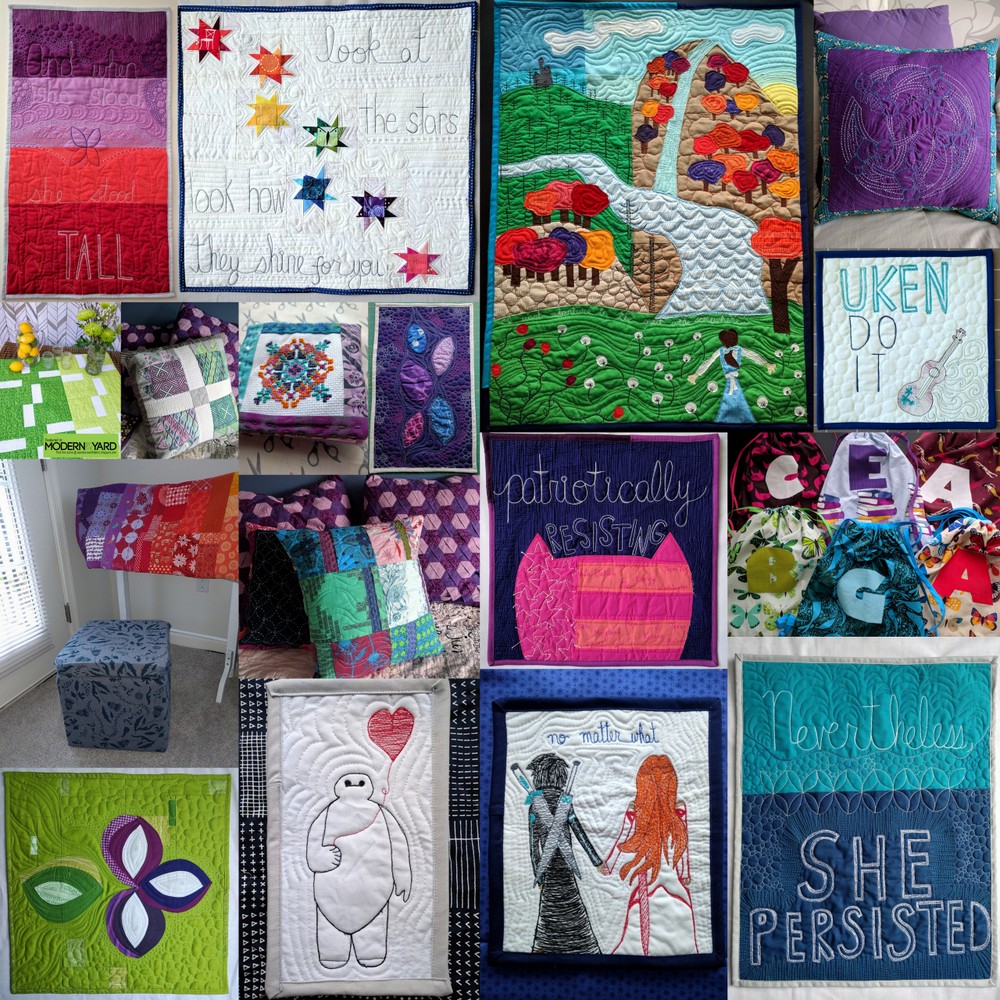 This year, I finished 17 quilts (4 of which I can't show yet), all of which have linked blog posts on my Portfolio page (though not the top left just yet!). Some of these (namely Fall Spectrum and Today I Feel) are among my top favorite finishes of all time. I forced myself to stretch in a lot of new ways with both piecing and quilting this year (especially free motion writing). Also, I discovered my excitement over making and sharing politically motivated art.