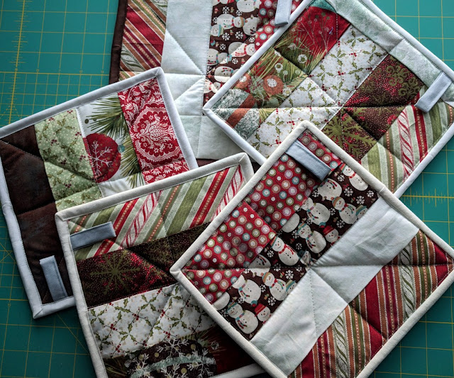 I made potholders with Insul-Bright for the first time - these were fun to make and also a great way to use up holiday fabric scraps. There are two layers of Insul-Bright for stability. I hope the recipients can use them in their holiday decor next year!