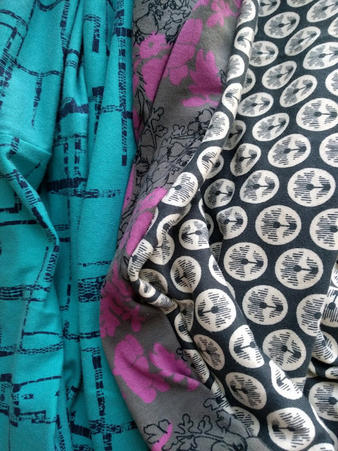 I also made a couple knit infinity scarves for special coworkers using this tutorial from Sew4Home (the tutorial uses voile but it's even easier with knit - less pressing needed!). They are so warm (I had to test them, after all) that I want to make myself one sometime.