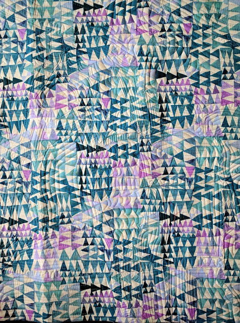 I was really pleased with the results of echo quilting on the back! Texture won! Not that I'll see it much, but it makes me happy. And that's what matters, right? This fabric is "Painted Pottery" by Carrie Bloomston.