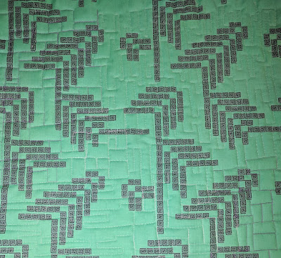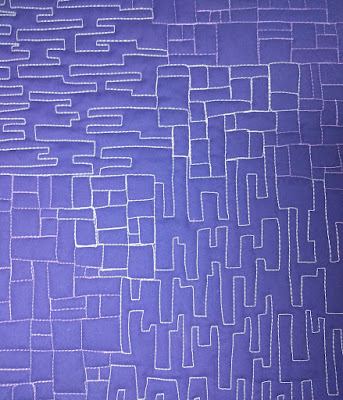 February's theme is "bricks." I really had fun time choosing threads to make sure they contrasted with my fabrics (I want my hard work to show up!). This is a beautiful purple solid from my stash, and I used Aurifil white (2024) and Violet (2520) to quilt it up. I'm trying out 1-2 (dare I say 3?) motifs for each month; I want my sampler quilt to showcase lots of motifs.