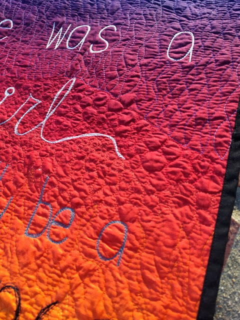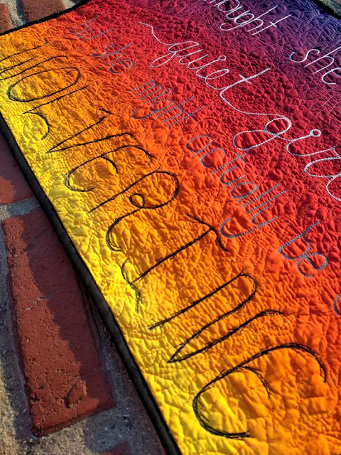 ReplyDeleteI am so impressed...with the quote, the quilting, the fabric and with your continuing evolution. This is an amazing quilt. The fabric is just wonderful.