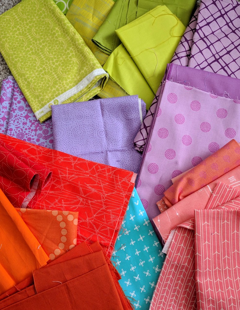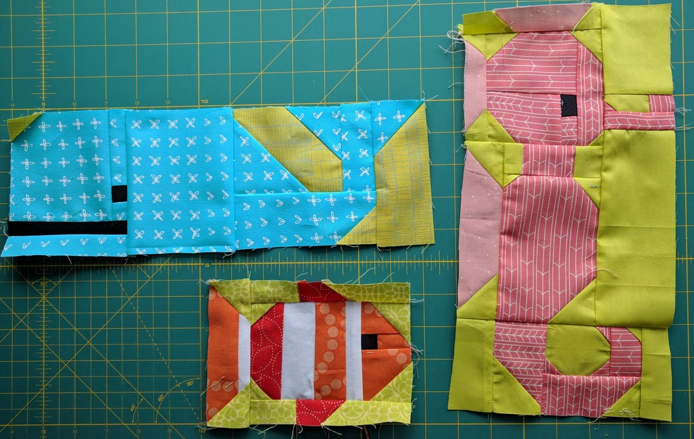 My niece has already been learning how to sew, and when I showed her the "Awesome Ocean" pattern I had just bought (by Elizabeth Hartman, which I'm already using for the otter quilt), she was all in. On a weekend afternoon, my niece chose the colors and animals to make as we talked about contrasting fabrics. She loves bright, vivid colors, just like me!