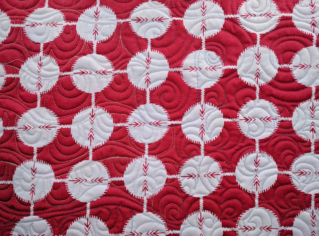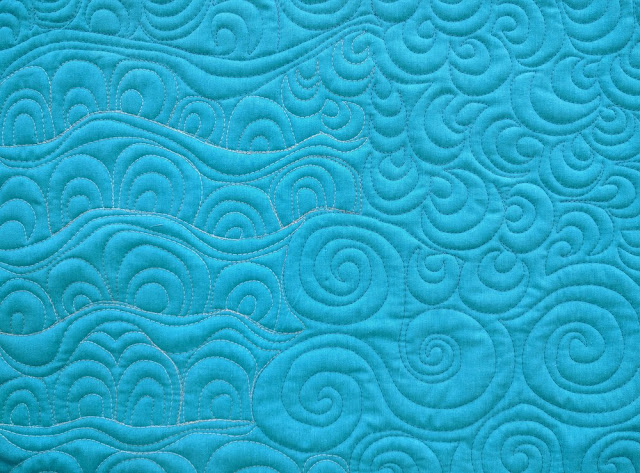 One of my absolutely favorite modern free motion quilting motifs is the Bear Claw by Christina Cameli (see top right). It's so easy to quilt and a perfect filler for a background where you'd like some texture. I followed that with some big spirals, and then to the left, I tried LuAnn Kessi's clam shells. I'm itching to try some of the other variations she posted about. This one is very forgiving.