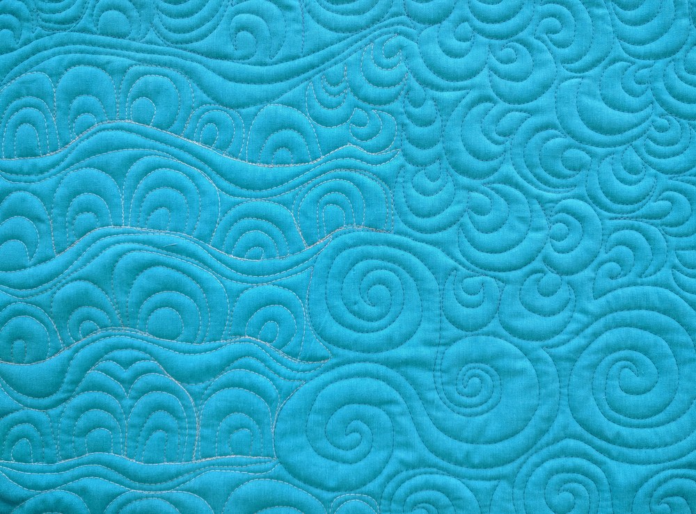 This month, we're exploring curves and waves - a precursor to more circular quilting! The tutorials I posted range from beginner - intermediate/expert, and, just like the last three months, I combined a few different motifs in my quilt sandwich. I've also made an effort to change thread colors to vary up the quilt; here, I experimented with Aurifil 4060 (Silver Moon - variegated gray) and 1126 (Blue Grey).
