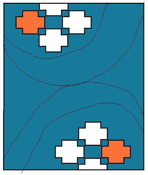 I liked the idea of using a short, somewhat squat version of the Greek cross because it seems more unexpected and unusual. When designing this quilt, I thought it would be interesting to let part of the design disappear off the quilt, and after playing around, it seemed even more appropriate to include 2 different groupings of crosses.