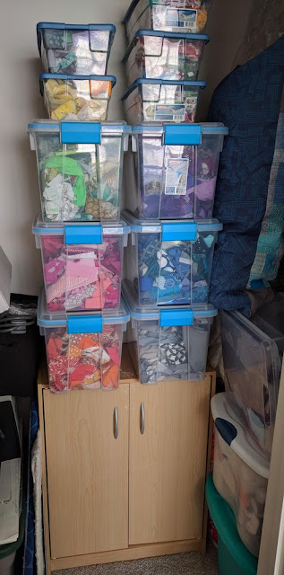 ReplyDeleteI definitely will be going through my stash as I work to downsize. I think it is likely I will end up with solid yardage only, but maybe a few blender prints will find their way to go with me, too. It will be an interesting process figuring how how much I can travel with. The new bins look very inviting and I love it when bins stack and nest neatly.