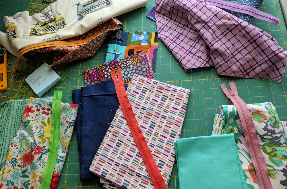 ReplyDeleteGreat pouches, I love all of the fun colors of fabric and zippers. My favorite little present to quilters are pincushions, you can never have too many :)