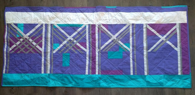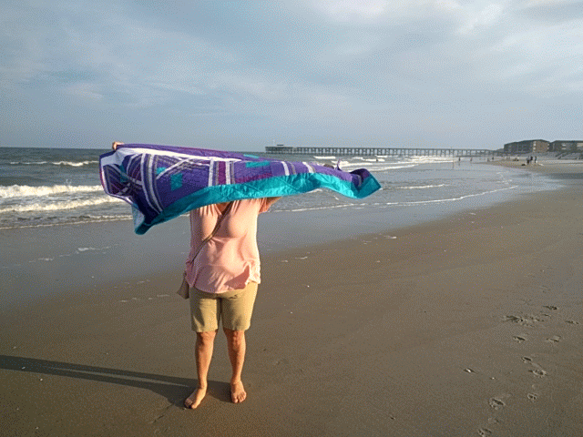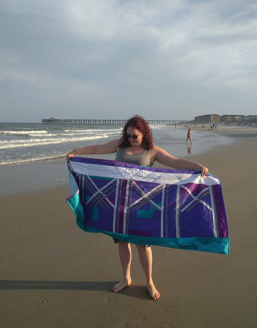 The first of three quilts that I got to gift was in planning mode since January. As I've mentioned before, my parents recently moved from our home state of NJ to South Carolina and bought a brand new house down there. I was fortunate to be able to visit them for a week at the end of June, right after school let out. It was the perfect time to get this quilt finished and gift it to them - a long, summery, beachy wall-hanging meant for their new living room.