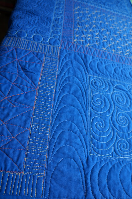 That royal blue is definitely swoon-worthy! I love how solids allow the quilting to shine and how you explored rounding verses straight / linear motifs in the different colors.