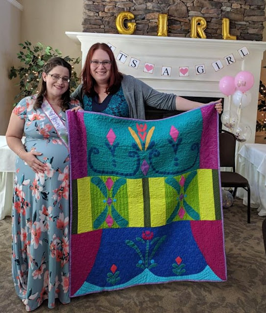 It was so exciting to present the quilt to July at her baby shower, and now, baby A is here to enjoy it, too!