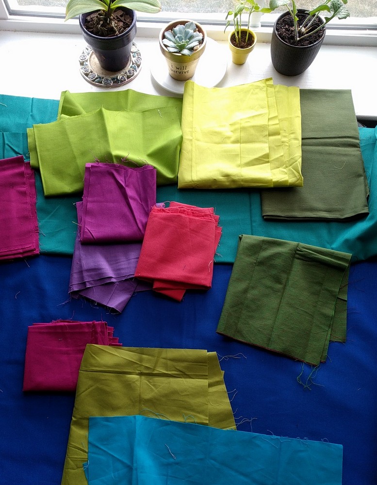 The best part about this quilt was that it was entirely stash-made; I didn't have to buy any particular colors. I just stretched out what I had and substituted where necessary, and it worked out splendidly. It's in those moments that I'm glad I have a fabric and scrap stash.