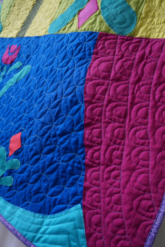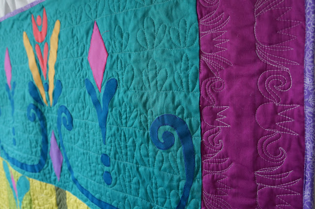 ReplyDeleteSuch lush and gorgeous colors Jess. Your quilting is superb, as always. My granddaughter loves Frozen also.