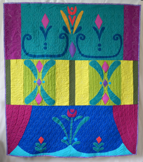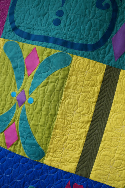 ReplyDeleteI never get tired of looking at this quilt. It has such bold color, interesting details, and fabulous quilting! What a lovely gift!!
