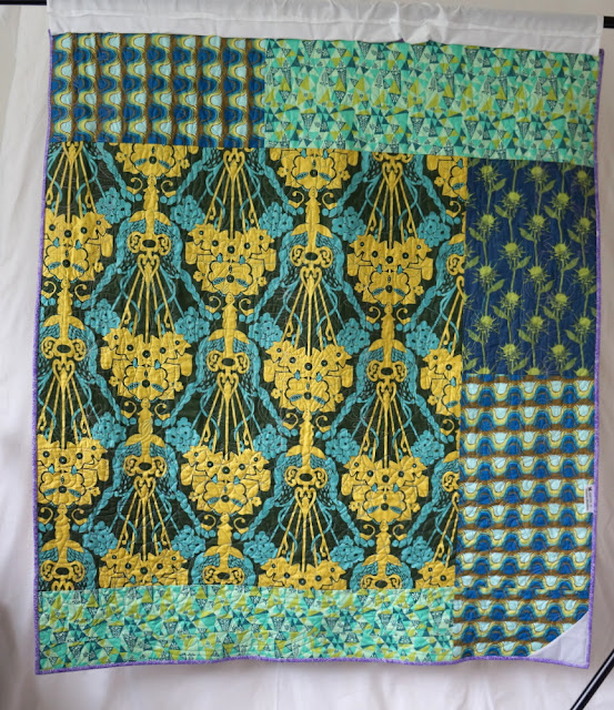 ReplyDeleteWhat a wonderful gift of love and friendship--and your design, quilting, colors are amazing! And what an adorable baby--all smiles and sweet little toes. I hope you can visit her often--nothing like snuggling with babies :)