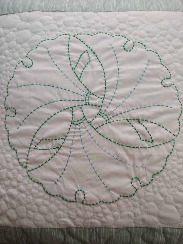Pillow for my mom - the sashiko ginkgo leaves (pattern from Easy Piecing) on the right were done early in the year. Always knew I'd make it into a pillow for her; I've made several sashiko pillows at this point and one other just for her! :)